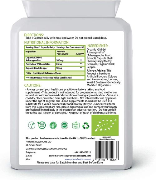 Prowise KSM-66 Ashwagandha (500mg) with Organic Black Pepper (10mg) | 90 Capsules