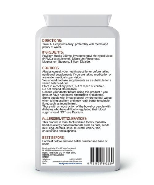 Prowise Psyllium Husks 750mg – 90 Vegan Capsules | Natural Fibre for Digestive & Gut Health